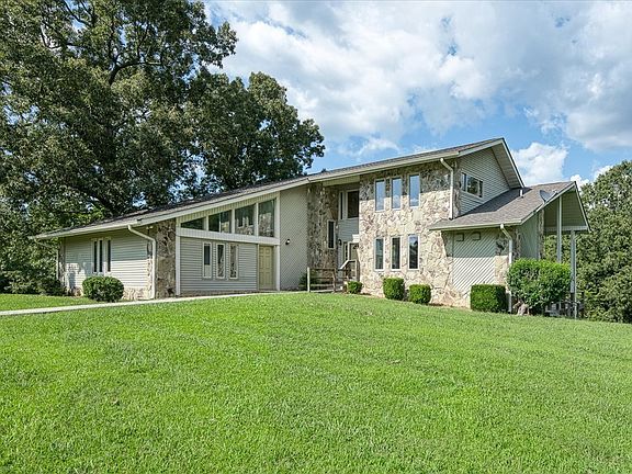 One of a kind Tennessee retreat on 6 acres providing a spacious stone style home, guest house or office area, basketball court, and level to sloping land! This is the perfect opportunity to make this home your own peaceful oasis, whether it is your primary residence or a getaway property! It was built by the UCHRA for a boys camp and offers two living areas with vaulted ceilings, beam accents, floor to ceiling stone fireplace, and wood wall detailing throughout the home. The main level also offers a dining area, kitchen, and what could be the primary suite with a full bathroom as well as access to the side deck which wraps around the whole length of the back of the home, looking off into the woods. Upstairs, there are multiple bedrooms and another bathroom. The basement is completely finished and has its own covered patio, multiple showers and another bathroom, as well as plenty of storage space. Also close to Center Hill Lake or Caney Fork.