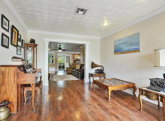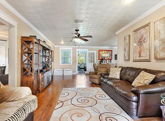 PRICE REDUCTION! Conveniently located 4bd/3ba home has a large inviting living area opening to the dining room and kitchen. Great for entertaining. Both the master bedroom & in-law suite have attached baths and walk-in closets. The spacious backyard has a covered patio and a deck along with several citrus trees. The converted garage can be an office, playroom or 5th bedroom. Other features include crown molding, sunroom, and security system. Plenty of living space and amenities.