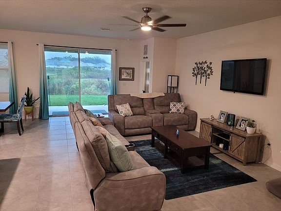 QUICK AND EASY MOVE IN with only first month's rent and $1000 Security deposit. This all-concrete block constructed, one-story layout optimizes living space with an open concept kitchen that overlooks the great room, dining area, and oversized outdoor covered lanai. The owners suite, located at the back of the home for privacy, has an ensuite bathroom with oversized shower. At the front of the home, two bedrooms share the second bathroom while the fourth bedroom is located near the laundry room. This home includes an electric range, microwave, dishwasher, refrigerator, washer and dryer. The 2 sliding doors off the living room open into a screened in 15x25 pool with attached hot tub. House also has a full home water softener, solar panels, full pool service, internet. Includes weekly mowing service with lawn care and pest control. Located in a quiet gated community. Just a short drive to shopping and restaurants. Minutes from highway 75 and state route 41. To prequalify or apply, download the RentRedi app from Google Play or the App Store. For applying through the RentRedi mobile app, please follow these steps: Step 1. Tap the "Apply" button. Step 2. Click the icon. Step 3. Select whether you're prequalifying or applying. Step 4. Enter in your unit code: VHL-231. Step 5. Click "Enter Information" and answer the questions. Step 6. Click "Send" to submit to the landlord. This property is using RentRedi for rent payments. With RentRedi, you can easily submit rent payments, boost your credit by reporting rent payments, sign up for affordable renters insurance, and more from the app!