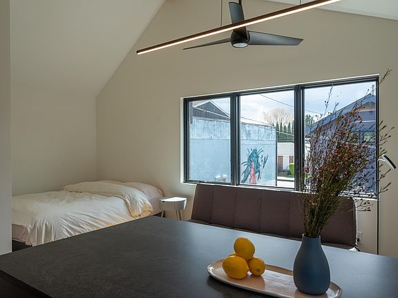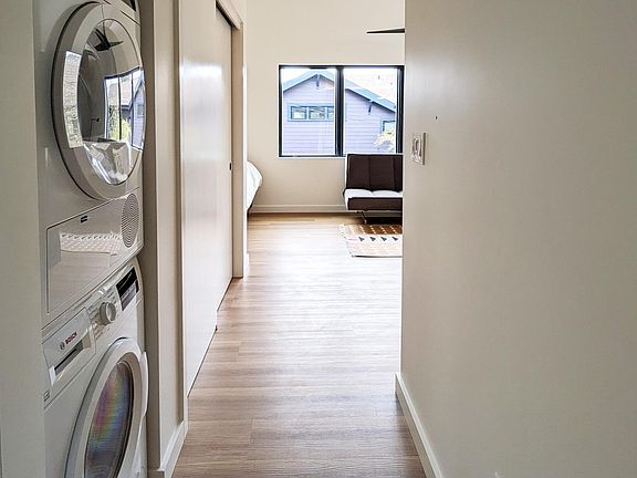 Rental Description: 2024 construction, architect/owner-designed detached ADU for rent behind a historic 1888 Craftsman just 2 blocks from the amazing Mississippi District. We replaced a 100-year old carriage house behind our home with a new construction, 2-story ADU and lovingly designed it with modern and useful features for living in a small footprint: 2nd floor apartment with large south-facing windows and a tall, lofted ceiling for bountiful natural light Efficient ductless mini-split heating and air conditioning with smart thermostat Thoughtful kitchen with induction range, microwave, garbage disposal, quartz countertops, tile backsplash, counter seating and lots of cabinet space for storage Tiled bathroom and shower with north-facing window Ample storage in a 7'-wide closet with built-in shelving, drawers, and hang bar Stacked in-unit Bosch washer/dryer Private off-street parking space included Covered, keyless entry door with private stairwell off the parking space Level 2 EV charger available for use (with additional utility charge). Location: Two blocks from the dining and shopping on North Mississippi Ave. 5-10 minute walk to Williams / Vancouver and New Seasons. 15 minute bike ride to downtown, close proximity to I-5 and 405. Lots of bus options and the yellow Max line on N Interstate Ave. Other notes: Month-to-month, with a minimum commitment of 12 months Refundable security deposit: $1,500 2 person max occupancy Proof of renter's liability insurance required (coverage to least $100,000 per occurrence) Main house backyard space not for tenant use No smoking on the premises No pets All utilities included: $135 / month (High speed wireless internet, electricity, water, trash, recycling, compost) Furnished available; please inquire for rate.