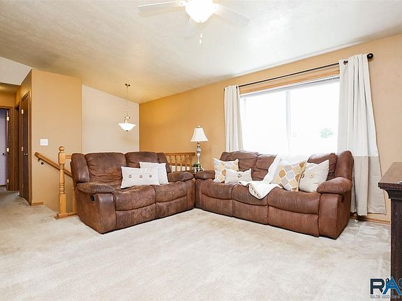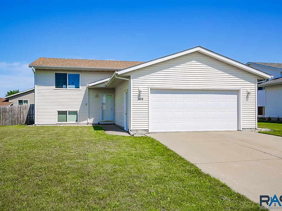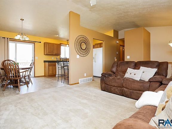 Located in the rapidly developing northwest corner of Sioux Falls, you will love the convenience to the interstate combined with the peaceful neighborhood setting. This darling split foyer home has 3 bedrooms and 2 full baths. The large living room window and vaulted ceiling brings maximum light into the main living space. An eat in kitchen with breakfast bar and abundant cabinets equals a great space! Enjoy many summer evenings from the shaded East facing deck and paver patio. The yard is also privacy fenced! Head to the lower level to enjoy an expansive family room with surround sound and garden level windows. The 3rd bedroom is large and the 2nd full bath includes an updated vanity. The two stall garage is finished and has an epoxy floor plus a built-in workbench. Enjoy Sioux Falls living plus the smaller school benefits of the Tri-Valley school district.