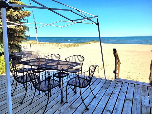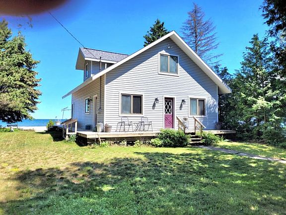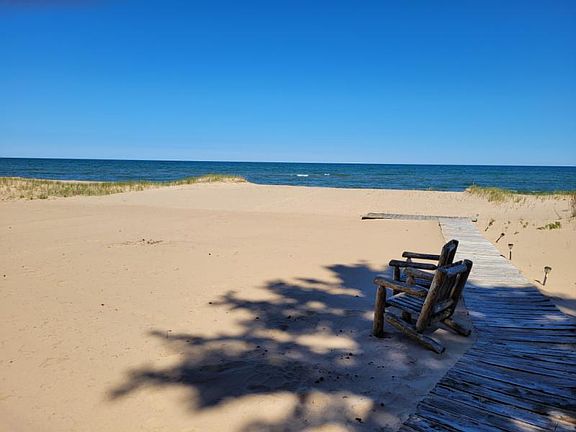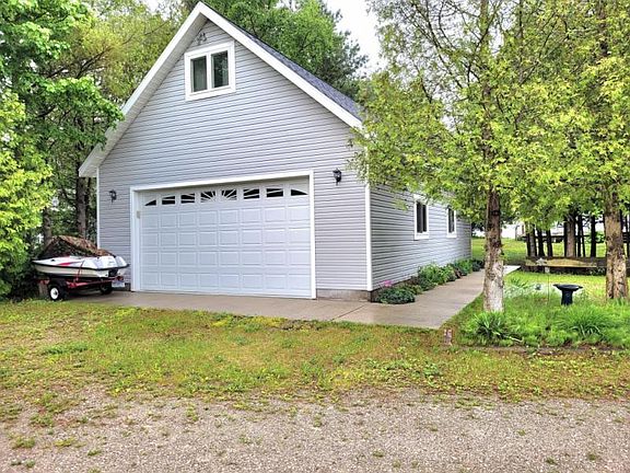 4 bedroom, 3 bath home on 85 feet of pristine sandy beach. The beach does not get any better than this one. There is also a boardwalk and a Tiki Bar. Great view of lake from living, dining, kitchen and bedroom. Garage was built in 2005 and has a large sleeping area with a 3/4 bath and heated. The garage itself is fantastic with drywall, epoxy floor, great lighting and heat. Make this your year around home or an Up North cottage. Great walking beach in both directions.