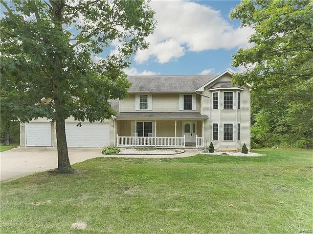 USDA Eligible !!! Spacious 2 Story in Seckman Schools situated on 5 acre lot with a HUGE 1000 sq ft garage that iis a 3 car double tandem garage car tandem stretching 35x32 This home features 4 large bedrooms with a 2nd floor laundry. There is a Huge dining room and a plenty of entertaining areas. There is a large kitchen with plenty of cabinets, and a pantry with a large breakfast room this opens up to the great room with a wood burning fireplace and covered deck that overlooks the 5 acre lot. The upper level has a large master suite with vaulted ceiling and a large master bath with separate shower and tub. All of the bedrooms feature walk in closets. There are 3 additional bedrooms. The lower level is finished with a walk out and a free standing wood stove. There is a family room, a rec room with a built in bar and an exercise room.