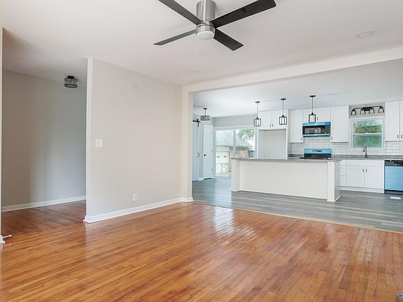 Bright and move in ready brick rancher on corner lot. New everything! New paint, new flooring, new windows, new fixtures, new vanities, new doors throughout. Step in this newly remodeled inviting home that offers a great open concept. The eat in kitchen is made for entertaining with an 8 ft island with tons of counter space and cabinets. Kitchen also features room for dining room table and pantry with barn door. Primary suite has nice sized closet and ensuite with walk in shower. Property sits on a huge corner lot with attached one car garage with new door & motor.