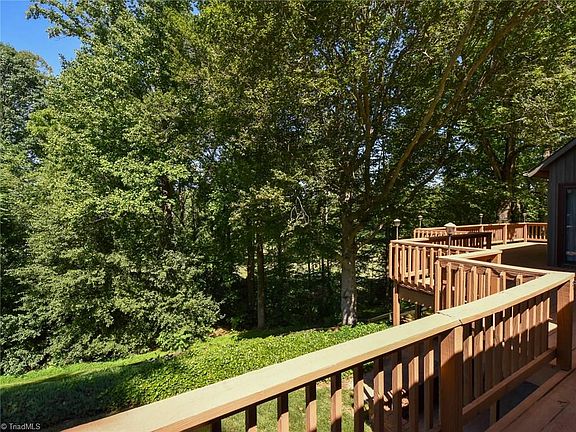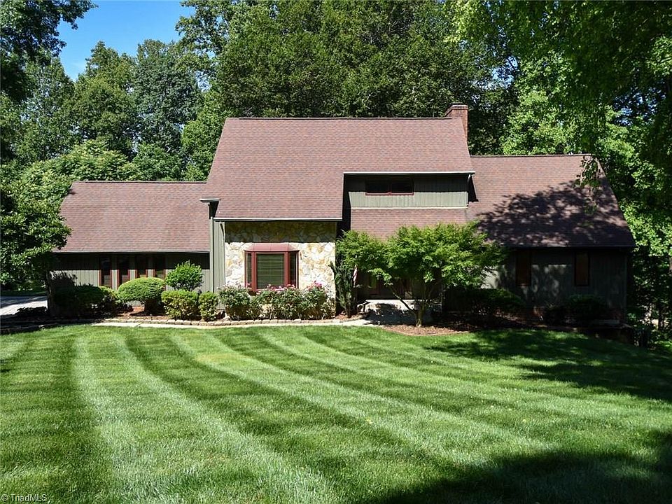 Soaring ceilings & golf course views of the Cardinal are what this wonderful contemporary home has! TONS of living and entertaining spaces with a huge front yard and private cul-de-sac lot. Expansive front yard for outdoor activities and enormous basement has possibilities as an in-law suite w/ full bath, bed and living area or a teen hangout or man cave. Main level master w/huge en-suite. Abundant storage throughout and an updated kitchen. Convenient to I-73 or Bryan Blvd to all of the Triad & NO HOA!