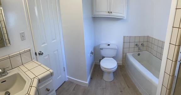 Large Two bedroom + One bathroom unit located on the first floor. This unit has a front and back door for nice breeze flow and accessibility and large windows with natural light. Unit features newly installed beautiful modern waterproof floors and fresh paint throughout. Kitchen has stove and and beautiful cabinets. Large bedrooms with mirrored closets. Property has a laundry room on site. Clean 6-unit, building shows true pride of ownership. Unit comes with a one car shared garage. Conveniently located near several amenities; banks, coffee shops, restaurants, major studios, Taluka Lake and more. Very well kept building - true pride of ownership. Landlord pays for water, tenant pays for all other utilities including trash service. Some small friendly pets are ok with pet deposit.