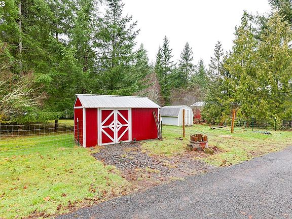 Bring this beautiful 5 acre parcel back to life! Live in current home while building your dream home! Home has crawlspace & old galvanized pipe issues but...Has 2 car extra deep carport plus 720 SF insulated 2 car garage/shop/studio w/ gas stove, separate electrical panel & metal roof. 10x14 shed w/ metal roof & 16x8 tool shed. Land is level with slight slope to fenced treed acreage(potential here!) in back. Easement for driveway. Timber & so much potential. Room for all your toys!
