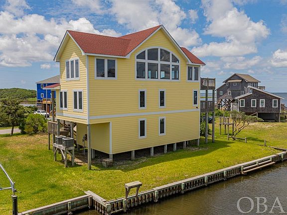 Discover the ultimate coastal retreat with this waterfront 4-bedroom home, perfectly nestled along a serene canal with breathtaking unobstructed sound views. Located in the Hatteras Colony subdivision, this home offers multiple beach access points just a short walk away. The top floor boasts an open floor plan with a modern kitchen, a spacious dining area, and a cozy living room, all framed by expansive windows that showcase the panoramic water views. The second level has four bedrooms. The soundside bedroom features a private balcony with an en suite, offering stunning views of the sound. A second bedroom also comes with its own en suite, and the additional two bedrooms are generously sized and share a well-appointed bathroom. The lower level has a large game room and a spacious garage, perfect for storing all your fishing and beach gear. This bulkheaded waterfront property is a boater's paradise and a haven for water sports enthusiasts, offering easy access to boating, windsurfing, kiteboarding, and more. Located in the heart of Avon, it is within walking distance to the Froggy Dog Restaurant and Dairy Queen, and you’re close to essential amenities including a grocery store, pharmacy, medical center, and delightful local shops and eateries. The area also offers lovely walking and bike paths, ideal for leisurely days spent exploring. This property isn’t just a house—it’s a gateway to a lifestyle where every day can feel like a vacation. With great potential for rental income, make this exceptional property your next adventure!