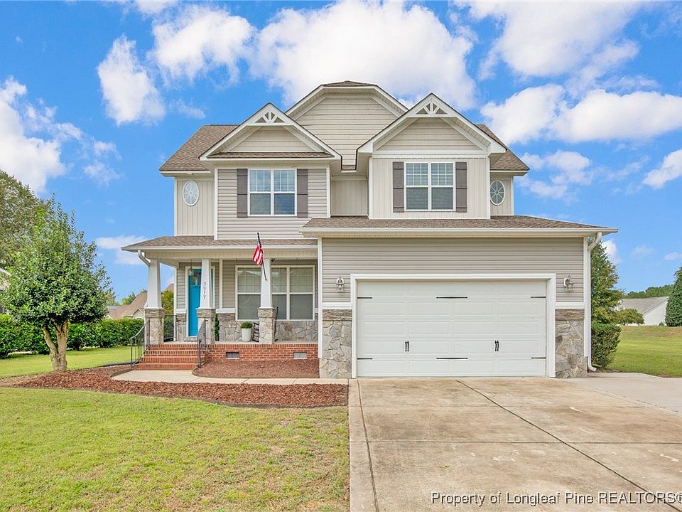 Come experience country life with a quick drive to the main gate at Fort Liberty and only minutes to downtown Fayetteville. This well maintained 4 bedroom, 2 1/2 bath home is awaiting its new owners. If you need extra space, this home has it. Downstairs you'll find a beautiful kitchen featuring granite countertops, stainless steel appliances, a butler's pantry and a breakfast area. The kitchen overlooks the formal dining area & living area. On the back of the dining area, you'll enjoy sitting in the sunroom which offers abundant light. Right inside the front door you'll have an office with French doors and built ins. The laundry room is complete with a utility sink and cabinets for storage. There's also a half bath downstairs. Upstairs is where all the bedrooms are located. The owner’s suite is very spacious with an additional area that could be used as a reading nook, gym area, another office space or anything you desire. It also features 2 separate closets, double vanity and a beautiful, tiled walk- in shower with separate tub. Down the hall you will find the additional 3 bedrooms and a full bath complete with double vanity. This home also offers a 2 car garage, a screened porch, a spacious yard, an irrigation system (ran off private well on property) and a wired shed. Don't miss this one. Schedule your showing today!