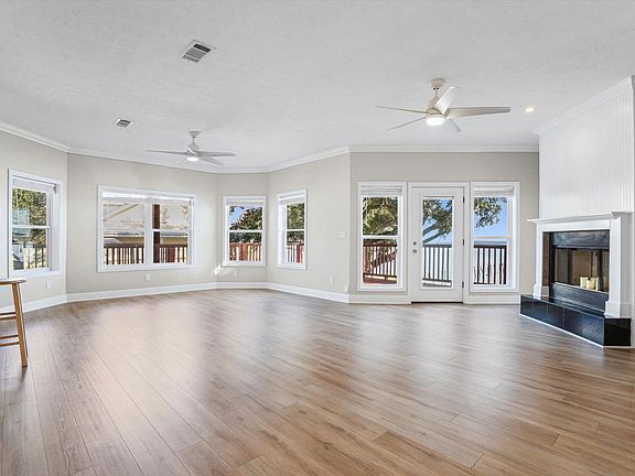 Experience serene bayfront living in this wonderful retreat on Mobile Bay, offering expansive water views and a generous back deck perfect for relaxing or entertaining. Designed for convenience, all living spaces are located on one level. Built in 2007, the home now features fresh paint and brand-new flooring throughout for a clean, modern feel. Step inside to find an airy, open layout highlighted by tall ceilings, elegant crown molding, and a family room flooded with natural light. Large windows frame picturesque views of the bay and the majestic oak trees that surround the property. The primary bedroom, positioned on the bay side, treats you to peaceful water views from both the bedroom and the ensuite bath. The open kitchen with a breakfast bar makes everyday living easy and hosting guests a pleasure. Enjoy multiple outdoor living areasspacious upper and lower decks designed for gatherings, morning coffee, or sunsets. Practical features add even more value: abundant covered parking beneath the home keeps you dry on rainy days, and a convenient lift with remote control makes bringing groceries and belongings upstairs effortless. The property also offers low-maintenance vinyl siding, a durable metal roof, and a powered workshop shed complete with workbenches. Wake up to beautiful sunrises and unwind to gentle bay breezesthis is coastal living at its best.