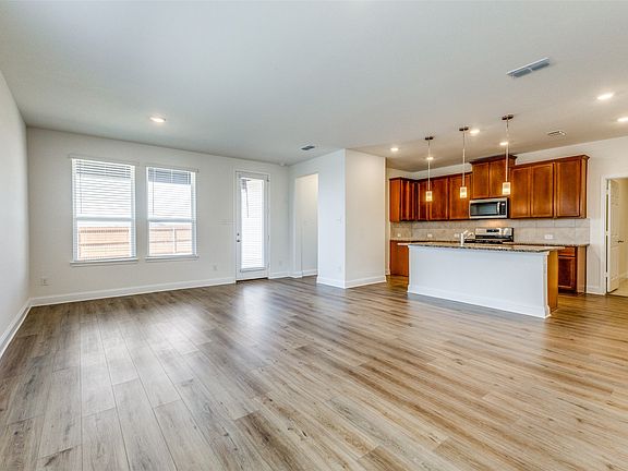 Experience modern living at its finest in this meticulously crafted home by KB Home. The open concept kitchen and living room area, complete with 42” whole house cabinets and 6-panel interior doors, offers a seamless flow for both relaxed living and entertaining. The gourmet kitchen boasts extended granite countertops, stainless steel appliances, and a gas range stove. Unwind in the primary bath featuring a separate tub and shower, an extended vanity with sink and cabinet, and upscale finishes. Step outside to the covered patio with an extended deck, automatic full sprinkler system, and full house gutters. Enhanced with decorative touches like a Kwikset SmartKey entry door, 2” faux wood cordless blinds, and a smart thermostat, this home is designed for comfort and convenience. Make this home yours and enjoy the modern elegance it offers. Current time frames before closing may be longer than originally anticipated. See sales counselor for approximate timing required for move-in ready homes. Ask sales counselor about closing cost and rate buy down opportunities.
