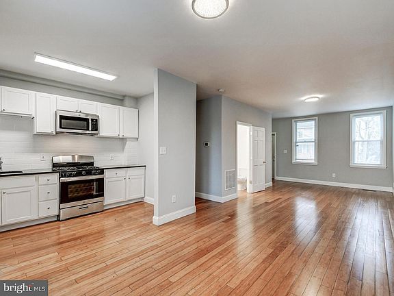 Beautifully Updated Brick Front Rowhome with Large Front Porch, Spacious Living Room Leads to Light and Bright Kitchen with Brand New Cabinets, Brand New Granite Countertops and Brand New Stainless Steel Appliances and Delight In The Huge Pantry! Gleaming Hardwoods Throughout Main and Upper Level. Upper Level Boasts 3 Bedrooms and Full Bath with Dual Vanity and Tub Shower. Full Lower Level with Rear Entrance to Huge Yard and Storage Galore! On Top Of All This You Will Also Enjoy Your Very Own Off Street Parking Pad! A Must See!