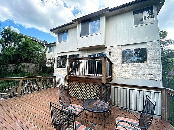 Lovely landscaping and big bur oak trees welcome you to this beautiful Steiner Ranch home. The excellent lot fronts on a quiet cul-de-sac and backs up to the greenbelt and trail. You can enjoy the serenity of nature and entertain guests on the expansive back deck. The floor plan is open to your creativity with two living spaces and a bonus office or bedroom. The remodeled kitchen is equipped with all that you need including a double oven. Retreat to your master suite with double-vanity bath, separate shower, relaxing garden tub and spacious walk-in closet. Easily stroll to the community pool and park. Also, nearby access to shopping, dining, and the lake are just some of the reasons why so many people love the Steiner Ranch lifestyle! Vacant and move-in ready!