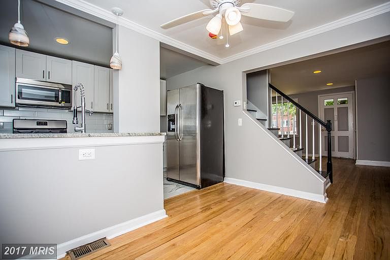 STUNNING renovated rowhome in Belair-Edison! Beautiful refinished HW floors and recessed lighting throughout. Open KIT w/ SS appliances, granite counters, and digital marble flrs! Fully fin basement w/ ceramic tile and 1/2BA. NEW plumbing & electric. Deck and patio off rear w/ gravel parking pad! Close proximity to golf course, Lake Montebello, Herring Run park, and much more! 3rd BR is basement.