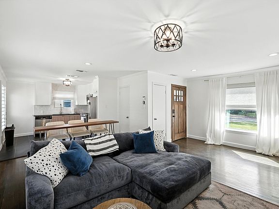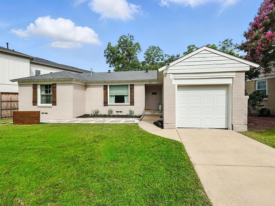 Stunning Midway Hollow home, with luxury new construction homes being built all around the area! Great drive-up appeal with recently painted brick and fresh landscaping. The beautiful new dark-stained front door opens to the large living, dining & kitchen area. The kitchen has been renovated with white cabinets, honed granite countertops & stainless appliances including a gas range, dishwasher, microwave & a new refrigerator that will be installed at move-in. The bathroom has also been renovated with a spacious walk-in shower with seamless glass, a contemporary vanity & mirror & updated lighting. Enjoy the huge backyard with wood fencing and a trellis with bar top. Attractive dark-stained hardwoods thruout, recessed and updated lighting, most of the windows replaced with thermo windows, designer window coverings & plantation shutters along the back, light & bright paint colors & more! Step just across the covered front porch to the garage that has been sheetrocked and has the full-sized washer & dryer connections. The roof is being replaced next week, and lots of the small details will be completed by August 7th!
