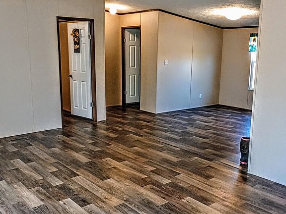 0.6 acres with a beautiful new double wide just put in. This home has 3 bedrooms and 2 baths (the master bath is must see in person bath room) The Laundry room gives access to the back door with an open concept throughout the living room and kitchen. The skirting is still being installed and the electric is awaiting inspection pictures will be updated as soon as we get those done.