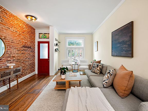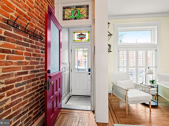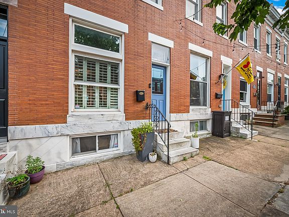 Welcome home to this Brewer's Hill beauty that perfectly marries modern updates and the Baltimore charm we all know and love. 13.5 ft wide home with massive windows in the front and back, lighting up the main level. Open concept main level with charming features such as the original inlay hardwood flooring and vestibule, exposed brick, and stained glass. Chefs kitchen with a custom built island w/ butchers block counter top, KitchenAid gas stove w/ range hood, wine fridge, and plentiful cabinetry including the perfect coffee/cocktail bar nook! Upstairs are 2 large bedrooms, both with walk-in closets and custom built-in organizers. Recently added ensuite bathroom to the primary with tasteful tile selection and a skylight. 2nd full bath access in the hallway with walk-in shower, black & white classic tiles & 2nd skylight. The lower level is partially finished and is perfect for a 3rd bedroom, office, gym, etc. Plenty of storage room in the remaining unfinished/laundry area. Parking pad in the rear of the home OR since street parking is always EASY, turn into your city patio oasis. Quiet but accessible location! Walking distance to Mobtown Brewing Company, several local bars/restaurants and bakeries (like Huck's, DiPasquales, Good Boy Bagels, Ovenbird Bakery and so much more), Boston St convenience at The Shops at Canton Crossing, Canton Waterfront Park and Patterson Park. Easy access to commuter routes/tunnels and both nearby Hopkins campuses. This home is sure to win your heart, so don't miss out!