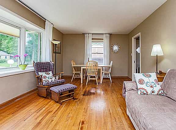 Well maintained 3 bedroom ranch with some beautiful landscaping. This house has been cared for inside and out. This home features a spacious living room with great natural lighting from the bay window, wonderful hardwood floors through out and a nice open feel. Kitchen updated with new flooring, paint and updated fixtures. Three nice size bedrooms with great storage space an awesome updated bathroom with new tile floor, paint, fixtures and more. Basement offers great storage space and possible finish in the feature. Huge two car detached garage and nice size backyard for relaxing or playing.
