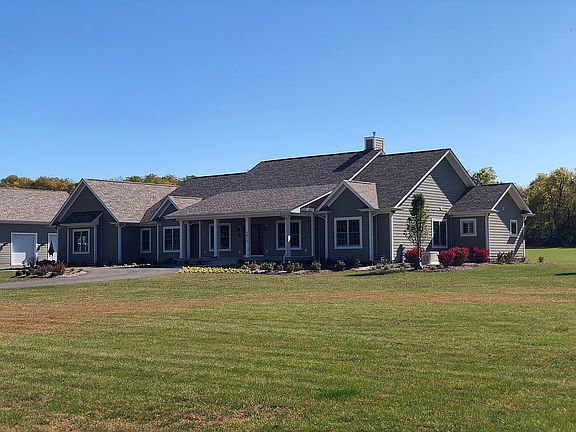 Single story contemporary set on 7 acres, with a 50'x30' detached shop bldg. and a 32'x56' pole barn.