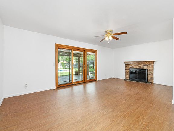 Welcome to this mid-century ranch home, offering comfortable living with a great outdoor layout. The front porch provides a perfect spot for relaxing morning coffee or an afternoon nap in your porch swing. Inside, the living room features a fireplace and sliding doors that open to the impressive backyard. The fully fenced yard includes an inground saltwater pool, a patio, and a covered pergola deck, perfect for entertaining. The storage shed is large enough for all your pool toys plus the gardening tools and mower. An electric pool cover will help to keep it clean year round at the turn of a knob. The kitchen is well-equipped with all appliances and a large island with room for dining and guest seating or extra storage. Upstairs, you'll find three bedrooms, including the primary with an en-suite, updated bathroom and ceiling fan. Also on the main level is the second bathroom and laundry room. The lower level offers a large family room with a dry bar, a bonus room perfect for a home office or crafting and a very large storage space. Additional highlights include a 2023 water heater, updated 200-amp electrical panel, steel beam floor trusses, triple pane windows, a sprinkler system and an irrigation well. This ranch home offers a great blend of indoor comfort and outdoor enjoyment. Schedule your visit today!