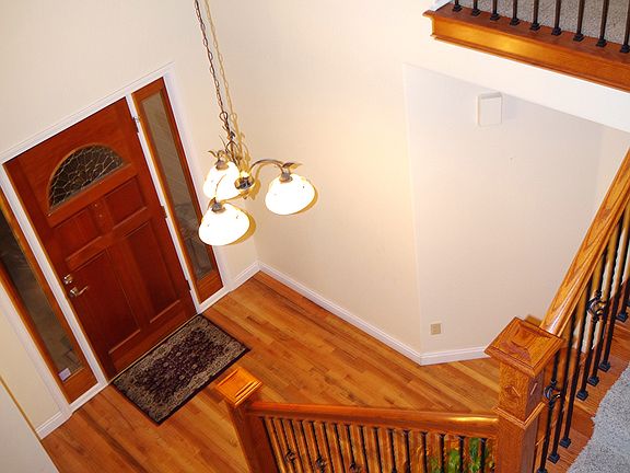 Come home to the peace of your own private refuge in secluded neighborhood featuring a 20' waterfall with grotto and fire pit, blackberries, cherry trees and more. Majestic rod-iron staircase in entry, hardwood floors, 2 fireplaces; double garden doors to large patio and nature, NEW roof in 2014, NEW windows, vaulted ceilings, double vanities in both master and guest baths, premium carpet, crown molding, foothill views, all conveniently located in southeast Boise.