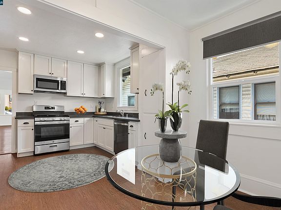 Recently updated inside and out! Great open floor plan and lots of light from the large dual pane windows. Modernized kitchen with white cabinets, quartz counters, stainless steel appliances. Hardwood flooring and custom millwork throughout. Main house is two bedrooms and one bath with a downstairs studio unit with a kitchen and updated bath. A large basement with laundry and storage areas as well. New electrical, plumbing, roof within the past few years. Sewer lateral replaced. Great outdoor space for entertaining or storage. Move in ready! Easy access to BART, freeways and shopping.