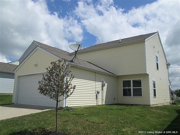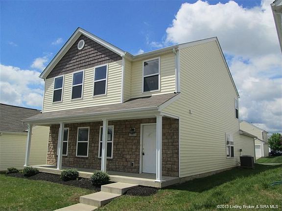 Large 4-bedroom, 2.5 bathroom in the quaint community of Armstrong Farms. This home has a large front porch and rear-entry garage. With over 1800 sq. ft., there is plenty of room. The house features a large family room, an additional den or office space, eat-in kitchen with breakfast bar, half bathroom and laundry room on the main level. All four bedrooms and two full bathroom are located upstairs. Home sold as is. Prospective buyers are advised to conduct independent assessment of property condition and features. Information is not verified or warranted. Properties are offered for sale to qualified purchasers without regard to the prospective purchaser's race, color, religion, sex, disability, familial status, or national origin. Sq. Ft. & room sizes are approximate. Taxes are '12 pay '13 and may reflect deductions that may not continue to apply, possibly resulting in a higher tax bill. Equal Housing Opportunity\n\nInformation Deemed Reliable But Not Guaranteed. Information provided by the Southern Indiana REALTORS® Association, Inc. © 2010 SIRA Multiple Listing Service. All rights reserved. Brokered And Advertised By: RE/MAX Results Listing Agent: Michael Osborne