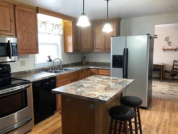 Very well cared for home in a nice location. Nice oak kitchen with island and stainless steel appliances. Family room has wood burner and a walkout to a huge covered patio overlooking a fenced-in half acre. Huge area to park a camper beside the garage. Security system included. 1 year AHS Home Warranty included.
