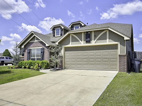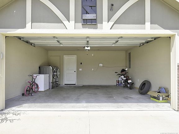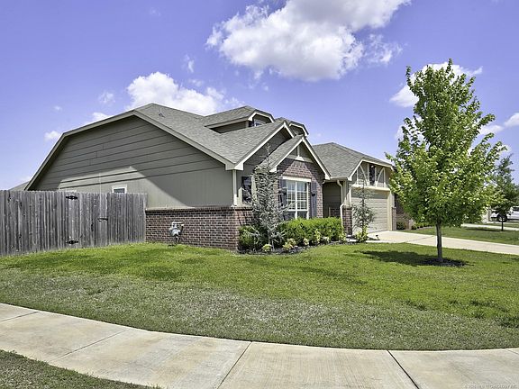 Jenks schools, open floor plan, granite kitchen w/ breakfast nook, split bedroom floor plan. Corner lot w/ huge fenced in yard & covered patio with beautiful outdoor kitchen, including ceiling fan. Huge seasonal master closet. Alarm system, barrel ceiling. Many upgrades include newly painted kitchen cabinets and bedrooms. New carpet in bedrooms. Light fixtures upgraded. Crown moldings and upgraded baseboards around the home.