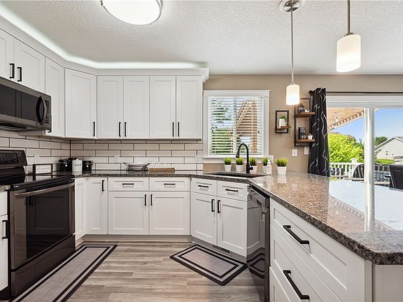 Beautifully updated walk-out two-story home with nearly 2200 SF finished space in a highly sought-after Urbandale neighborhood! Entering the home you are greeted with a great flex/office space that leads into the fully remodeled kitchen featuring new white cabinets, granite counters, tile backsplash, updated flooring, and new appliances! The kitchen is open to the oversized family room with built-ins surrounding a gas fireplace. The dinette leads out to great outdoor living space where you can enjoy the updated deck with pergola for shade. The upper-level features two nice sized spare bedrooms, including one with built-in bench/book shelves surrounding the window and a full bath to share. The primary suite has plenty of space and features an updated primary bath with walk-in closet. The walk-out lower level provides great entertainment space with a nice family room and updated 4th bedroom with new LVP flooring. The patio slider door provides great access to the flat and usable back yard space! Additional updates include a newer roof and gutters, new water heater, all new lighting throughout, updated half bath on main and so much more! Don't miss your chance to own this move in ready gem in the Webster Elementary school district!