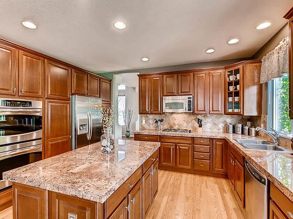 Immaculate and Beautifully designed 2-story in desirable Crystal Valley Ranch Sub. includes 4 Bdrms. 4 baths, main floor study, formal dining room, gourmet eat-in kitchen w/ granite counters and custom cabinets, 2-story ceilings, gas fireplace, Master suite w/ attached 5-piece bath & his & her walk-in closets, bright open floor plan, full unfinished basement, quality finishes throughout and more. Attached over-sized 3-car garage. Prof. landscaping w/ deck, sprinkler system and fenced back yard. Wonderful neighborhood w/ comm. pool and clubhouse. Great location close to school, parks and shopping.