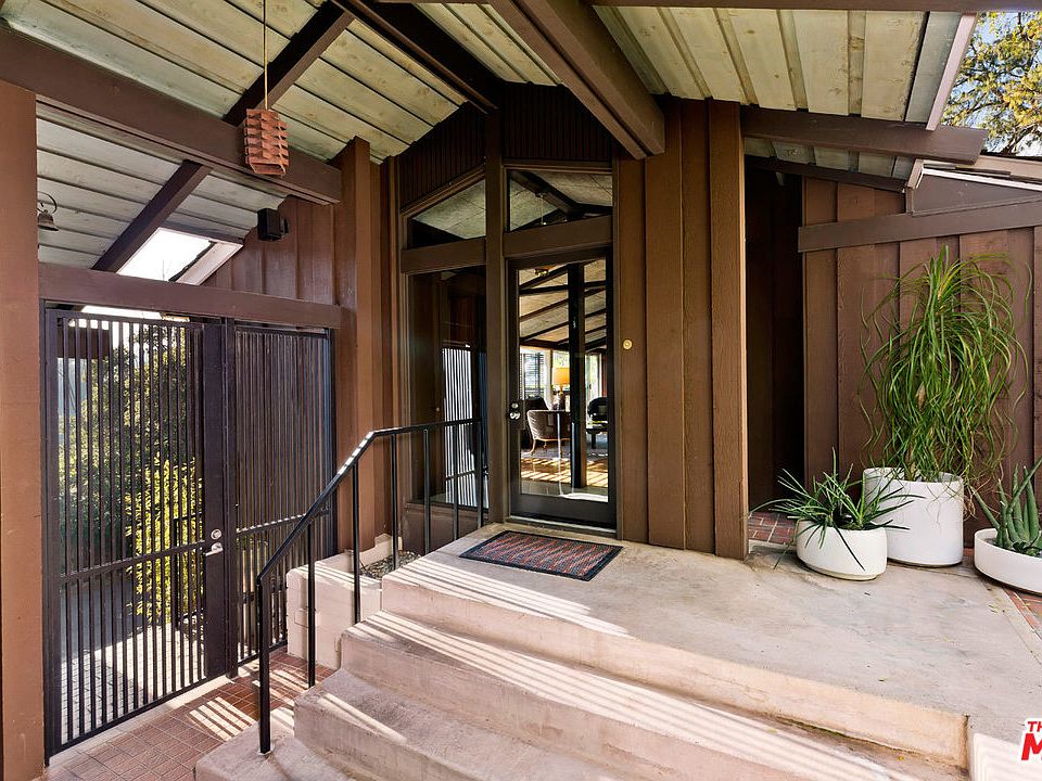 Sleek mid-century view house built for and designed by Architect, Robert G. Johnson as his private residence. Walls of glass reveal secret lawn and gardens with meandering paths, mature landscaping and vibrant city lights views to the west. 3 bd & 2+1/2 bath house ( 1,741 sf.) w/ large separate family room (400 sf) off of pergola covered pavilion. Designer done interior with impeccable taste and finishes. Large lot with fun tree house. Grand Oak tree shades a large deck with hot tub. Separate garage and bomb shelter/ wine room. Gorgeous home beautifully integrated with natural surroundings.