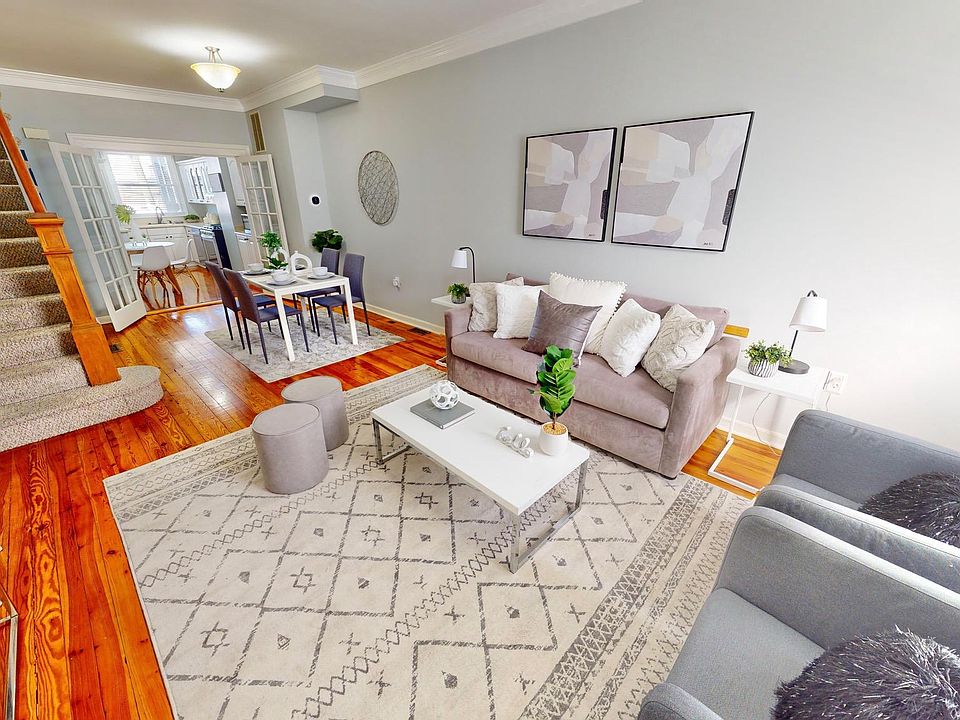 Welcome to 3918 Hudson St nestled within the coveted Brewers Hill neighborhood. Step inside to an open-concept first floor with an abundance of natural light, stainless steel appliances and pine wood flooring throughout. The large kitchen has white cabinets with a ton of storage. Ascending to the upper level, you'll find a serene main bedroom, complete with a chic updated ensuite bathroom featuring a custom shower and a granite countertop sink. The 2nd bedroom seamlessly connects to an expansive composite deck, perfect for both entertaining guests and unwinding. An additional updated full bathroom on this level is bright, thanks to multiple skylights and the elegance of granite countertops. The lower level, currently serves as a versatile great room/office but has the potential to be transformed into an inviting third bedroom. Storage solutions abound in this basement, a true rarity among Baltimore rowhomes. Step outside to discover a charming rear courtyard with a composite deck conveniently located off the kitchen—a prime setting for hosting gatherings and savoring outdoor barbecues enhanced by privacy vinyl fencing. For those prioritizing parking, the rear fence/gate can be removed. Updated HVAC system installed in 2020. Embrace the opportunity to make this Brewers Hill gem your own, where charm, functionality, and modern updates converge to create a truly exceptional urban living experience. Easy access to 95 and super close to Canton Crossing with all the shops and grocery stores you need!