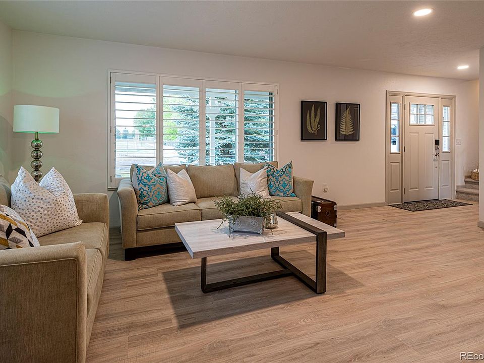 Welcome to this remodeled home sitting on a half-acre lot - don't miss the walk-through video tour for a closer look - https://vimeo.com/749742528. Bring your RV/Boat for all the recreation that Loveland has to offer. Modern conveniences completed in the last few years. Chef's Kitchen with Shaker cabinetry, stainless steel/nickel fixtures/quartz/subway tile backsplash, tons of cabinetry and a pantry. Thousands in custom updates added since 2020 - expanded Primary Suite w/2 sets of Barn Doors to the en-suite bathroom and the “To Die For” custom designed closet (this area could be converted back to a bedroom). Designer closet with chandelier, floor to ceiling shelving and natural lighting. This private enclave could also be a nursery or office. The en-suite bath has radiant floor heat under the beautiful hexagon floor tile and the floor, integrates right into the shower for low profile access. White subway tile, floating vanity with solid surface double sinks, vanity mirrors with lighting adjustments, double cabinet storage and natural light. The upper main bath custom designed with navy subway tile, Calcutta style floor tile and updated vanity/fixtures and has a skylight. Thousands recently added in custom Plantation Shutters for a touch of elegance and long term durability. Comfortable living throughout this home with flexible spaces, 4 beds (1 non-conforming), 4 baths, Fireplace and 3 living room spaces. Basement with Rec room/huge laundry/flex space, 2 more bedrooms & 3/4 bath. Private lot with space to enjoy the outdoors & design as needed. Double fence gate access for securely storing your toys. Two sheds/built-in firepit & raised garden planters. Attached to the extended patio is a large pergola w/screen/canvas enclosures - creating a private room. Enjoy this move-in home now - without high taxes and spec. taxing district fees. Minor HOA of only $25/yr. Recreation/schools/dining & amenities close by. Call agent for more info!