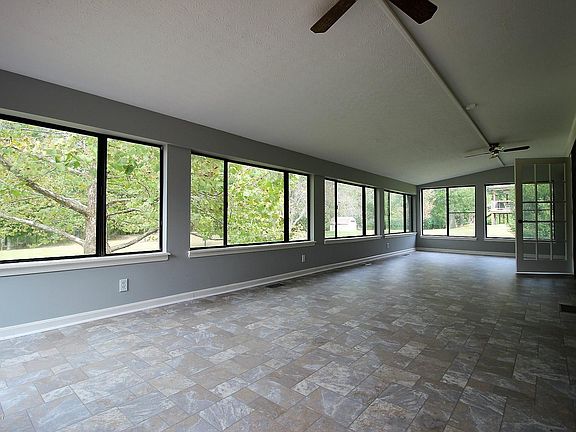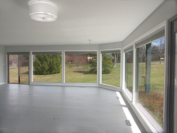 This custom-built, contemporary home is situated in the heart of Oldham County, and accessible through beautiful Carriage Hill Subdivision, where gently rolling hills, ponds, and spacious acre-plus lots make this the perfect neighborhood to either raise a family or even retire. Yet it is actually not part of the HOA, and therefore not subject to subdivision restrictions! Expansive great room with fireplace, dining area, and hardwood flooring, surrounded by five full length picture windows with views of the delightful park-like setting. Huge Sunroom has seven large windows, running the entire length of the back of the home, which leads to the deck via French patio doors. This is the perfect spot for entertaining or just observing the wildlife in the huge backyard that extends all the way to beautiful tree-lined Curry's Fork Creek (don't forget your fishing poles and canoe!). Deer bound by daily! Seller has remodeled the two baths including granite and beautiful Travertine tile work in the master. Three bedrooms and an optional fourth room that could function as a guest room, den, or office. The new large laundry room with overhead cabinets and tile flooring, is conveniently located by the entry from either the garage or front side door. There's plenty of attic storage via the pulldown step ladder in the hallway and tons of storage under the sunroom for all the lawn and garden equipment. The modernized kitchen has new hardwood flooring, granite countertop, matching LG appliances (electric range and dishwasher), and refinished cabinets. If you're looking for quiet, nature and dislike "cookie cutter", you need to see this home. Good access to I-71 N or S, great Oldham County schools too............