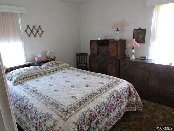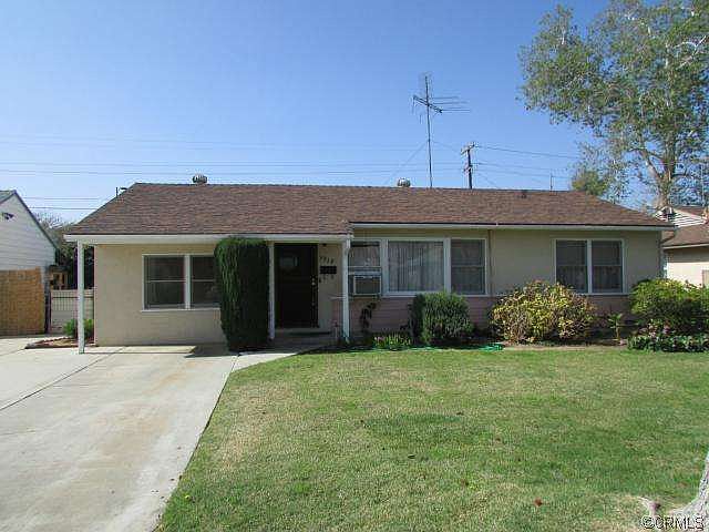 Cute, clean starter home on a tree lined street. Home is occupied by original owner. Third bedroom has no closet, could be used as a den or office. The garage was converted with a permit in 1958. Stove, refrigerator, freezer, and washer and dryer stay. There are Orange, Apricot, Lemon, and peach trees. Laundry and storage with outside entrance. Seller says there are hardwood floors under carpet except in the third bedroom.