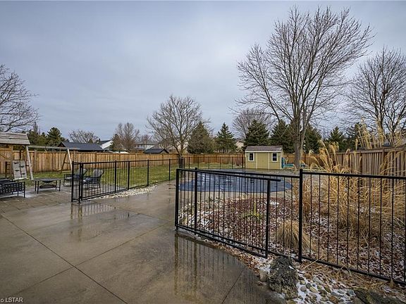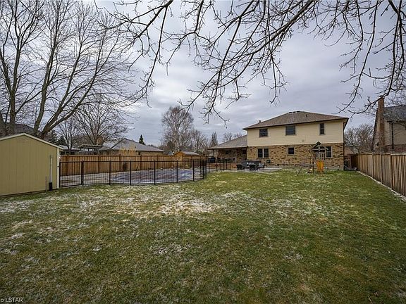Welcome to Stacey Crescent in Lovely Lambeth. This 4 bedroom, 3.5 bathroom home is located on country sized lot with inground pool. The large foyer transitions to the sun-filled living room /dining room combination, ideal for entertaining. The sprawling kitchen has been renovated and is loaded with soft close cabinetry, quartz counter tops, under mount/pot lighting, a breakfast bar & a large eating area. The adjacent, open concept familyroom with cozy fireplace is the perfect spot for family gatherings. The main floor finishes off with a powder room & mudroom (plumbed for laundry). Upper level has a modernized bathroom, 4 generously sized bedrooms all with ample closet space & large master boasts a walk in closet & updated ensuite with soaker tub & separate shower. The 4th bedroom is currently set up as a laundry room but could easily be converted back to a bedroom by moving machines & cabinets to the main floor mudroom. Lower level has recently been finished with a fabulous recroom/games area with pot lighting, office, 3-piece bath, large storage area & is plumbed for a wet bar that would integrate the support posts into it. The backyard oasis includes a hot tub, heated, salt water, inground pool (new liner to be installed) that is separated by iron fencing with barn style gates that swing wide open for those leisurely days poolside. Even with the pool, there is still so much yard left for play equipment, a cabana or to kick a ball around. Enjoy some shade under the covered deck or sun on the patio. Long list of updates includes most flooring (with bamboo on upper level), most windows, California shutters, shingles 2017, garage door & opener, kitchen, ensuite, furnace/central air & pool pump/heater/salt cell. With a family friendly layout, that is also great for entertaining, double car garage, parking for four on driveway, a quiet crescent, access to the 400 series highways and convenient to so many amenities, you won't want wait to book a showing on this one.