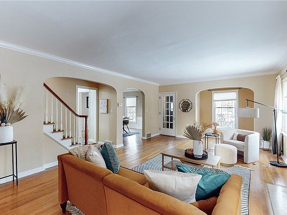 Lovely colonial nestled in the desirable Claridge Oval in University Heights. This all brick home is a triple threat, with charm, modern amenities & an abundance of space. With 4 generously sized bedrooms and 3.5 bathrooms, there's plenty of room to spread out! The roomy living room & dining room boast rich hardwood floors. A large family room opens out to a cozy patio, creating a seamless indoor-outdoor living experience. The kitchen is bright & cheery with aluminum tile backsplash, ample Corian counter space, S/S appliances & eat-in breakfast area, a cozy spot for morning coffee or casual meals. You will love the charming book nook in the living room--a perfect spot for casual home office space or lovely reading perch. A powder room and large mudroom complete the main level. Upstairs the 2nd floor has 3 well appointed bedrooms, including a dedicated master suite with large closets & it's own private bathroom. The secondary bedrooms share a bright and roomy hall bath. Head up to the 3rd floor where you will find a 4th bedroom suite with it's own heating and cooling, full bathroom with classic clawfoot soaking tub, and a walk-in cedar closet. It doesn't stop there! The lower level features a finished rec room with decorative fireplace, large wet bar and lots of natural light. The lower level also includes the laundry room with newer washer & dryer in 2022 (they stay!) and loads of storage to keep you organized. Other notable items: attached 2 car garage, fully fenced in yard, and replacement windows throughout. New shingled roof '22 (w/ transferable warranty) and new flat roof over family room 2024, waterproofed basement (w/ transferable warranty), new garage door and infastructure (w/transferable warranty), new hot water tank '22 and the driveway was freshly sealcoated just last year! Terrific location and lifestyle just moments away from Fairmount Circle. Schedule an appointment to see this one today!