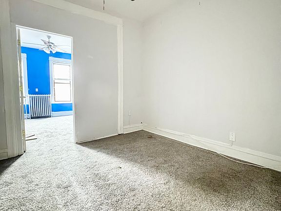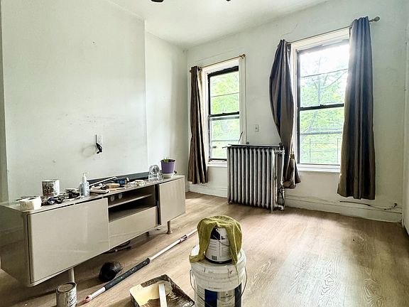 Two-bedroom railroad-style apartment available on the third floor of a walk-up building prime Sunset Park. The unit features a kitchen with stainless steel appliances, a living area, and two bedrooms that receive natural light. The apartment shows some normal wear and tear but offers a convenient location close to shops, restaurants, public transportation, and Sunset Park.