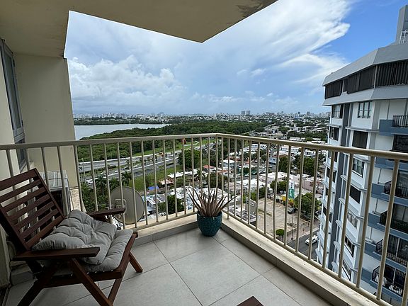 The apartment is fully renovated with spectacular views of the ocean and San Juan. Sit on the terrace and enjoy these memorable views. Take the elevator down and you're in one of the best beaches. Located 5 minutes from the airport and 5 minutes away from Condado. Water and internet included