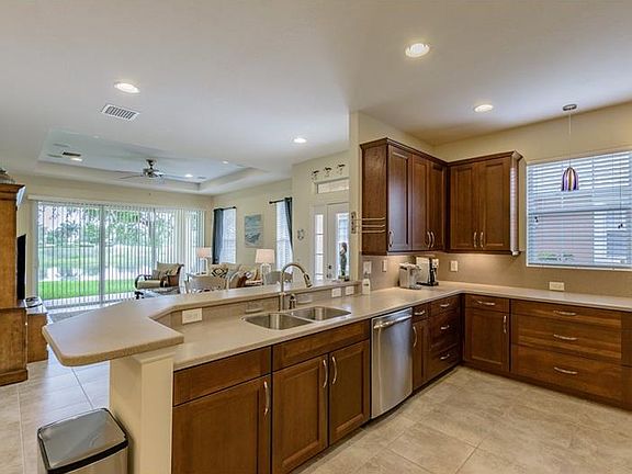 Shows like a model! Turnkey Lake front villa. 2 bedrooms + den, 2 full baths & 2 car garage on one level. Loaded with extra touches & upgrades (sound system throughout the house, Ethan Allen Furnishings, cabinetry, window treatments, tray ceilings and alarm), gourmet kitchen w/ stainless steel appliances, Corian counter tops, 42" cabinets, floor tile throughout the living and dining area, lanai overlooking your beautiful lake. Located in Palma Sola Trace a highly desirable community offering resort style amenities including clubhouse with gathering room, catering kitchen, fitness center, large heated swimming pool, sun deck and playground. Just a couple blocks from grocery, restaurants, shopping and bus. Short drive to IMG Academy, Anna Maria Island, Sarasota/Bradenton International Airport, award winning restaurants and so much more.