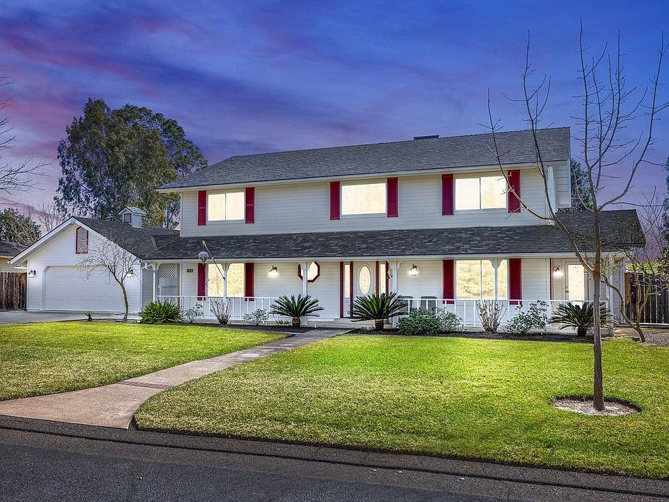 Nestled on nearly 3/4 of an acre, this exquisite home offers the perfect blend of rustic charm and modern luxury. Step onto the full front porch and into the warmth of this inviting abode. A grand foyer adorned with wainscoting and crown molding welcomes you. Bamboo floors grace most of the home, while knotty pine ceilings and wood beams add a touch of rustic charm to the living room and dining area. The heart of the home, the kitchen, boasts granite countertops, a pantry, gas appliances, and a large window overlooking the expansive backyard, perfect for enjoying the serene views while preparing meals. Retreat to the spacious master suite featuring a bay window with picturesque views, a walk-in closet, and a private bath with a custom walk-in shower and beautiful countertops, offering the ultimate in comfort and relaxation. Step outside to discover your own private paradise, complete with a built-in pebble tech pool, mature landscaping, a fully fenced backyard, and a charming gazebo. Entertain guests on the full patio or take a leisurely stroll along the walking path, soaking in the peaceful surroundings.With a six-car oversized garage and RV parking, there's plenty of space for all your vehicles and toys, making this property a car enthusiast's dream.Located just five minutes from Millerton Lake, outdoor recreation opportunities abound, from boating and fishing to hiking and picnicking. Meanwhile, the bustling cities of Fresno and Clovis are within easy reach.