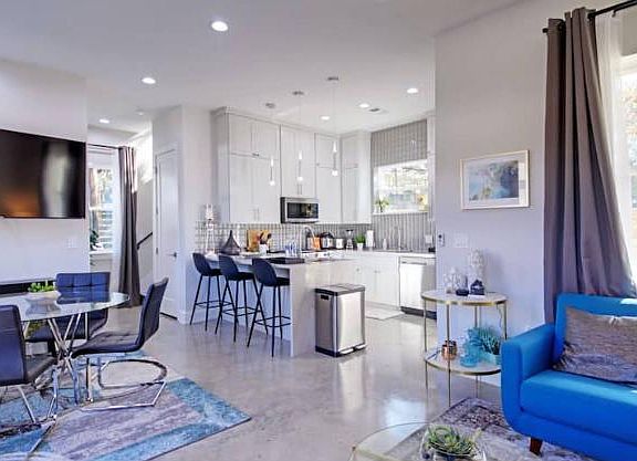 Don't miss this fantastic opportunity this stunning, 2021 build, energy-efficient smart home is ready for you rent! This gorgeous, modern home is within walking/biking distance to parks, restaurants, & entertainment. Only minutes to downtown, UT, major highways, employers, Music Festivals, & live music. Close distance to the Airport, Circuit of the Americas Formula 1 Grand Prix. This gorgeous home has so many features: modern recessed smart lighting, floor-to-ceiling custom soft close shaker cabinets, Great Oregon Oak SPC Flooring Upstairs, Energy Efficient HVAC with 90% Furnace & Smart Wi-Fi Honeywell Thermostat; August Wi-Fi Smart Locks, MyQ Smart Garage Door Opener, Nest Intercom & Smoke Alarm, Whole House Spray Foam Insulation, Tankless Water Heater, the only house in the immediate area that is pre-wired and set for AT&T fiber up to 1000mbps, , double panned windows, custom dual mailboxes, & many, many more features! This comfortable 2BR 2.5 Bath home is nestled in a tranquil neighborhood in burgeoning east Austin, only minutes from downtown and airport. It offers a relaxing retreat close to top restaurants, shops, attractions, and landmarks. Modern design and a rich amenity list make it suitable for small families, leisure & business travelers. 2 Comfy BRs Open Design Living Dedicated Workspace Back Porch Parking & More below! The space Stylish ambiance accompanied by modern amenities that spread across this entire, spacious home. The open space design living area conveniently combines the kitchen and dining area with the living room. Natural light shining through large windows, stained concrete floors enhance the luxurious ambiance. The home features two bedrooms and 2.5 bathrooms. - KITCHEN - It follows the home's contemporary design while offering stainless-steel cooking appliances and spacious countertops that extend into a kitchen bar. Microwave Stove Oven Refrigerator/Freezer Dishwasher Other than the already mentioned amenities, the home is also equipped with: Air Conditioning Heating Washer/Dryer Parking No smoking allowed inside the premises. Homeowner pays for Water, Electricity and Gas. Pet allowed under 50 lbs. (there will be a non refundable pet deposit)