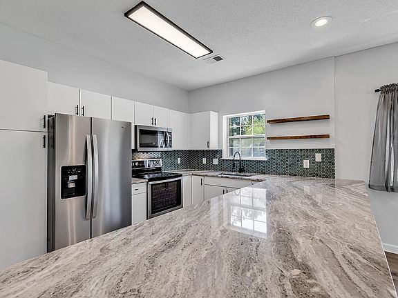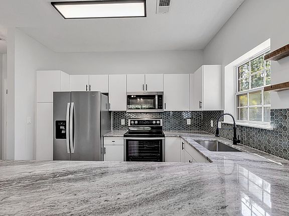 - Features: Breakfast Bar, Stainless Steel Appliances, Solid Surface Counters