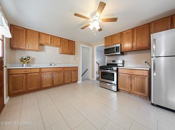 Priced to sell fast for the lucky buyer! Solid brick updated 3 bedroom split level duplex conveniently located near the train station. Brand new water heater, refrigerator, oven, microwave, windows and carpet. Total bathroom renovation. All electric has been serviced and inspected by the village. All new plumbing so there is no Brookfield flooding in this property... two sump pumps and a backup = bone dry lower level! Fenced in back yard for pets or outdoor gatherings. Brand new garage door and opener. Great school district, great location, great price! Estate sale AS-IS