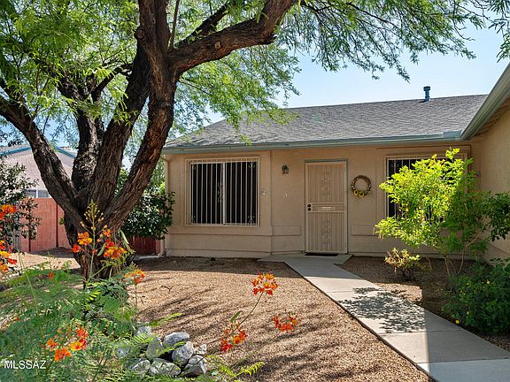 Mature landscaping creates great curb appeal and welcomes you and your guests to this Eastside 3 Bedroom/2 bath home. Conveniently located near DMAFB, Pima Community College, schools, shopping and parks. Wrought-iron security doors and window bars provide peace of mind. Well-designed kitchen w/lots of storage and counter space, pantry & breakfast bar. Vaulted ceilings, light and bright, with dining area & separate family room off kitchen. Primary bedroom has a wall of closets and can easily hold a king-sized bed; primary bath boasts a garden tub/shower and dual vanities. Attractive backyard with block wall and large (approx 11' X 14') storage shed that can become your workshop or ''she-shed''. This home has been loved and cared for and is ready for you to add your own personal touch.