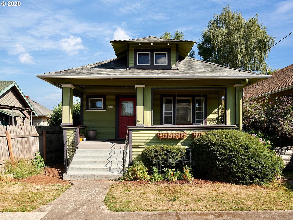 Hello Division! Super cute & loaded with charm one level Bungalow with THREE bedrooms on the main. Dining room and living room all one big room. Built in features in entry, window seat in DR. Large updated kitchen with room to grow. 2nd bedroom can be connected to master for nursery, office or home school. Front Porch swing facing south, Quiet backyard w/direct access from kitchen. Newer Roof, updated HVAC. Tons of storage in full basement. Transit & RESTAURANTS galore! [Home Energy Score = 4. HES Report at https://rpt.greenbuildingregistry.com/hes/OR10101010]