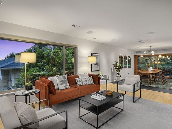 Modern and sophisticated with stunning architectural details throughout. This Vermont Hills mid-century modern is absolutely incredible inside! BRAND NEW Furnace and A/C. Dramatic architectural remodel with a blend of vaulted wood ceilings, extensive use of skylights, large custom windows that give an indoor/outdoor feel, warm woods, & dark stone/Ann Sacks tile. Plus one of the sleekest primary suites in Portland with a double wide jetted tub, large shower with 16+ shower head system, stunning skylit roofline, heated tile floors, and walk in closet with W/D hookups for secondary upstairs laundry space. Enjoy year-round views from the living room with automated window shades. From the built in wine fridge to the ~750 bottle wine cellar to the chef's kitchen and double kegerators, this is an entertainer's dream. The most beautiful outdoor kitchen and fireplace situated on a gorgeous beamed, covered patio with natural gas-plumbed roof heater. One-of-a-kind home theater with artful monochrome vintage Hollywood vibes, built in couches, and space for a pool table or dream up your own flex space (workout room, home office, playroom, etc). Located just one block from Gabriel Park, one of the city's best urban parks with brand new inclusive playground. This one is a must see! [Home Energy Score = 2. HES Report at https://rpt.greenbuildingregistry.com/hes/OR10135365]