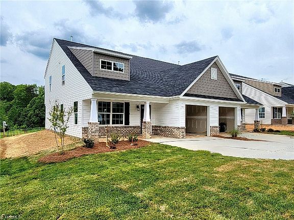 NEW NEIGHBORHOOD - Villas at Strawberry Creek by Windsor Homes! INDIANA floorplan (end unit) with Primary Bedroom on main. Kitchen has Alpine cabinets, ceramic tile backsplash, grey quartz countertops and vented gas range. Luxury Vinyl Plank flooring throughout main. Two Bedrooms, Loft and Finished Storage/Office room upstairs. One-Car Garage, Patio with Storage Building. Walking distance to Proehlific Park Sports Center, minutes from Battleground and New Garden shopping, parks and highway access. Lot 45 is almost complete. Call/text Kate for an appointment to visit. Photos and virtual tour are representative of floorplan, not decorator selections.
