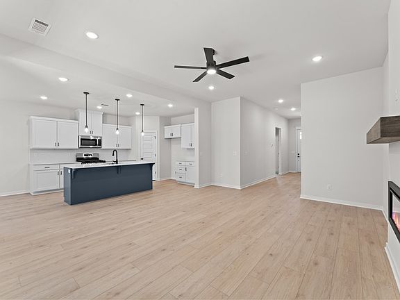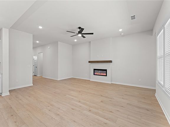 Fence, blinds and gutters included! Discover your dream home in the new neighborhood- Jacob's Crossing. Fredrick plan with 1 level, garage on the left & West facing! 10 ft ceilings in the living room, linear electric fireplace, LVP flooring throughout the main living areas & primary bedroom, quartz countertops & more. Chef's kitchen boasting frigidaire stainless steel appliances, gas range, pantry, quartz countertops, bar pull handles, large island & gorgeous backsplash. Luxurious primary bedroom features abundant natural light, while the spa-like primary bathroom offers a walk-in shower, double sinks, tub & spacious walk-in closets. Additional features include three large secondary bedrooms and a separate laundry room. Nestled on a generous lot with covered patio that overlooks the serene sodded, fully fenced backyard, creating an exceptional living experience. Sturdy concrete siding & brick! Model home located at 3631 Tranquility St-Lot 1.